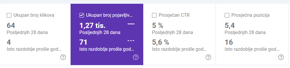 SEO optimizacija je donijela značajan rast u vidljivosti, broju klikova i pozicioniranju fotografske stranice iz Sarajeva, čak i van glavne fotografske sezone. U samo 28 dana, broj prikaza u Google pretrazi povećan je više od 17 puta, a klikovi sa 4 na 64, bez ikakvih troškova oglašavanja. Stranica sada redovno privlači organski promet zahvaljujući kvalitetnoj optimizaciji i strateškom pristupu sadržaju.